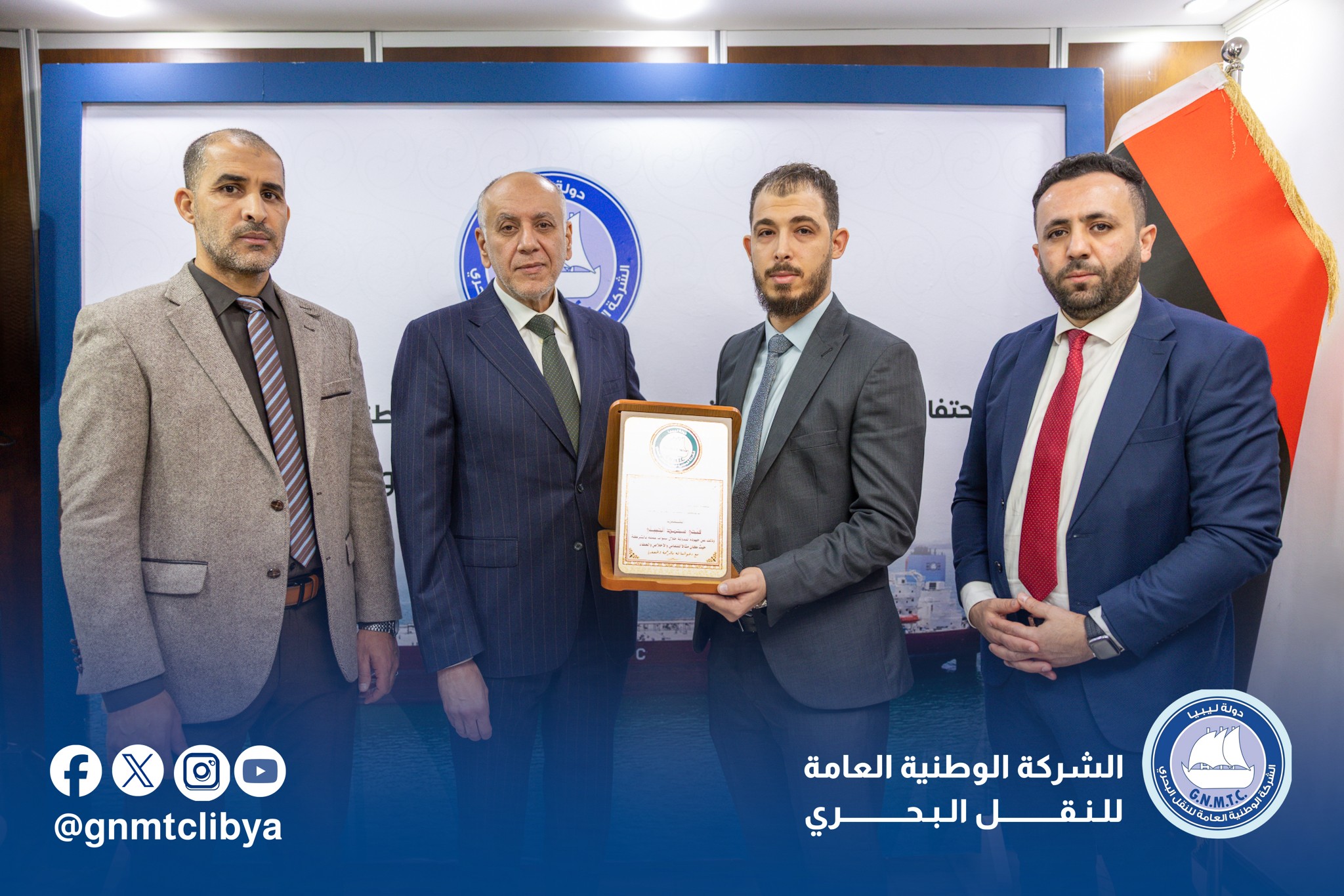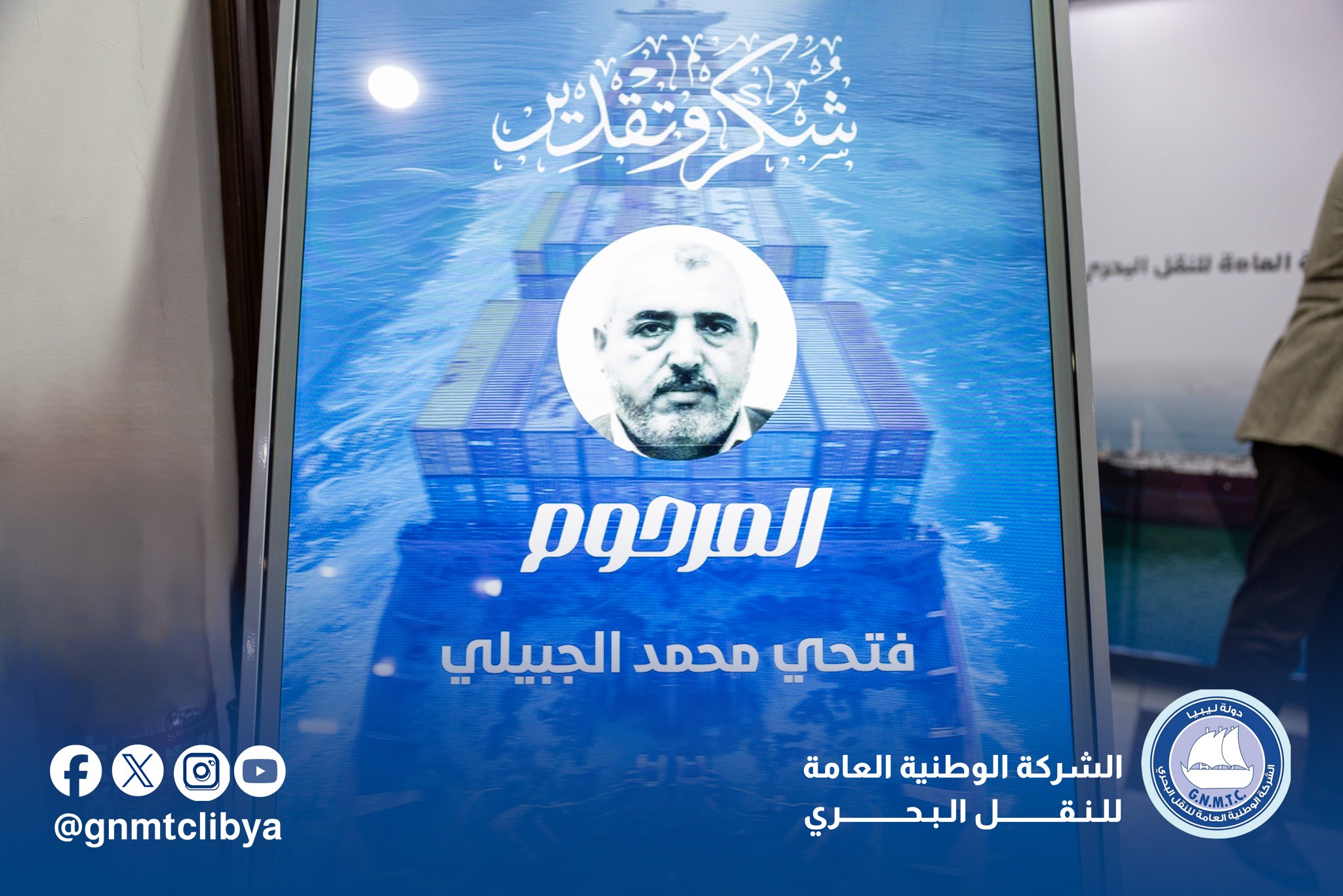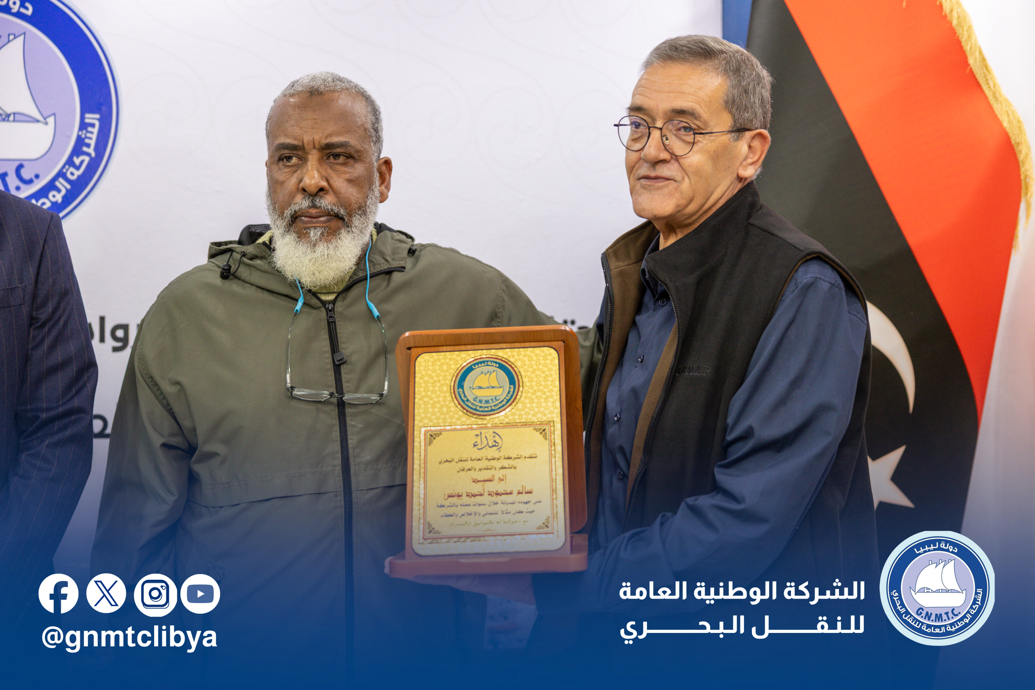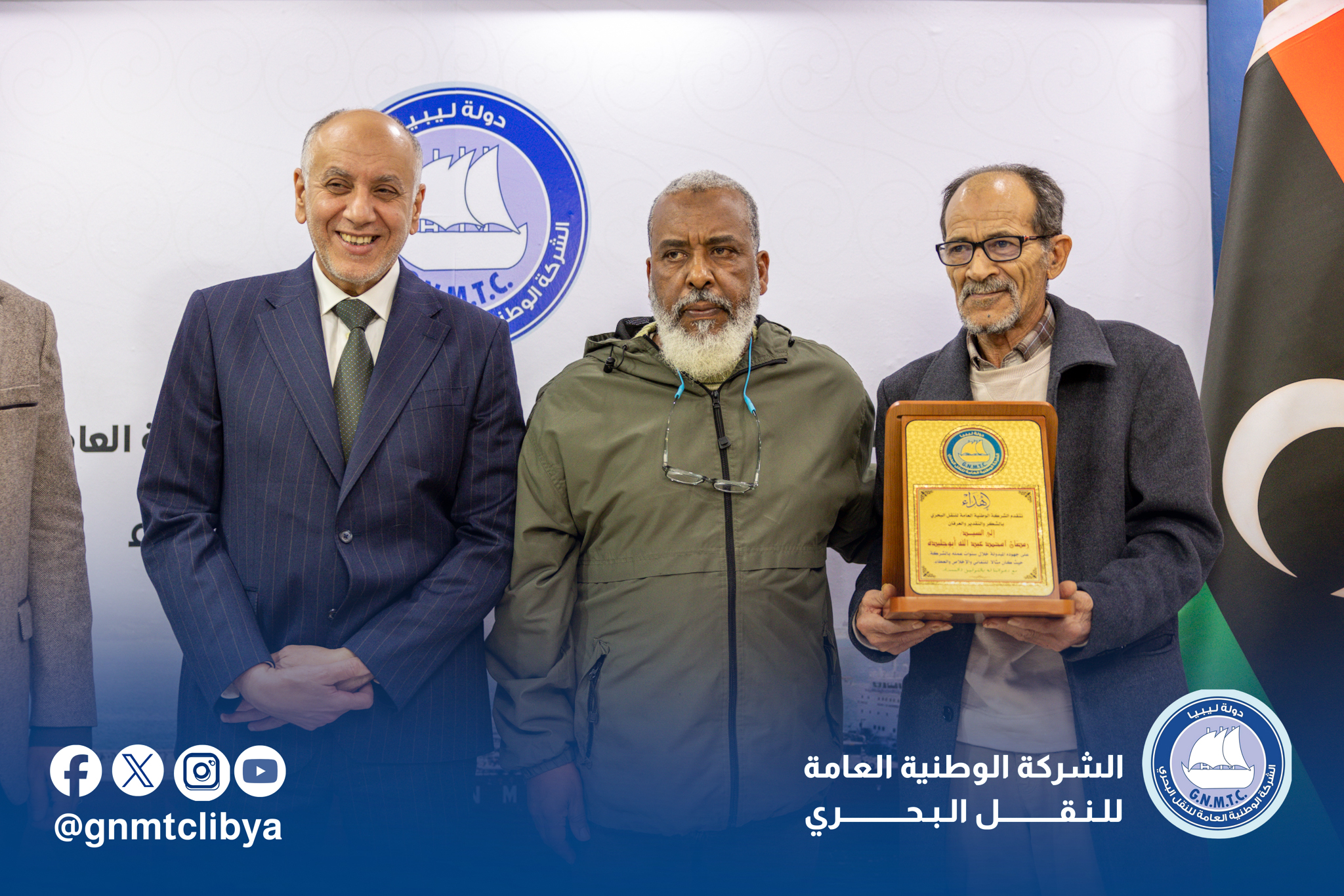 تحت شعار ” إرث من العطاء، يستحق الوفاء “،وفي أجواء ملؤها التقدير والاعتزاز، أقامت الشركة الوطنية العامة للنقل البحري احتفالية تكريمية لثلة من موظفيها السابقين من الرعيل الأول، سواء من أبطالنا الذين جابوا البحار على متن أسطولنا، أو زملائنا الذين أرسوا قواعد الإدارة الرصينة.